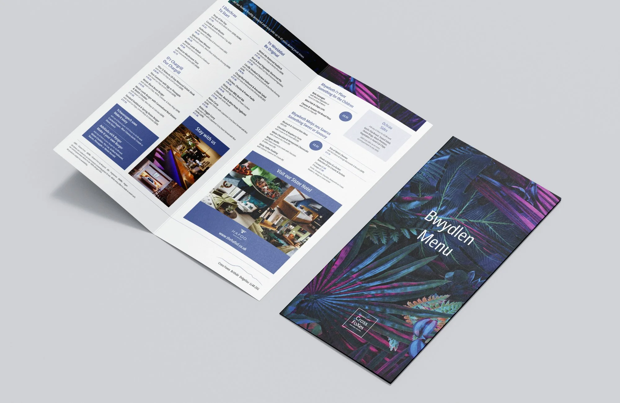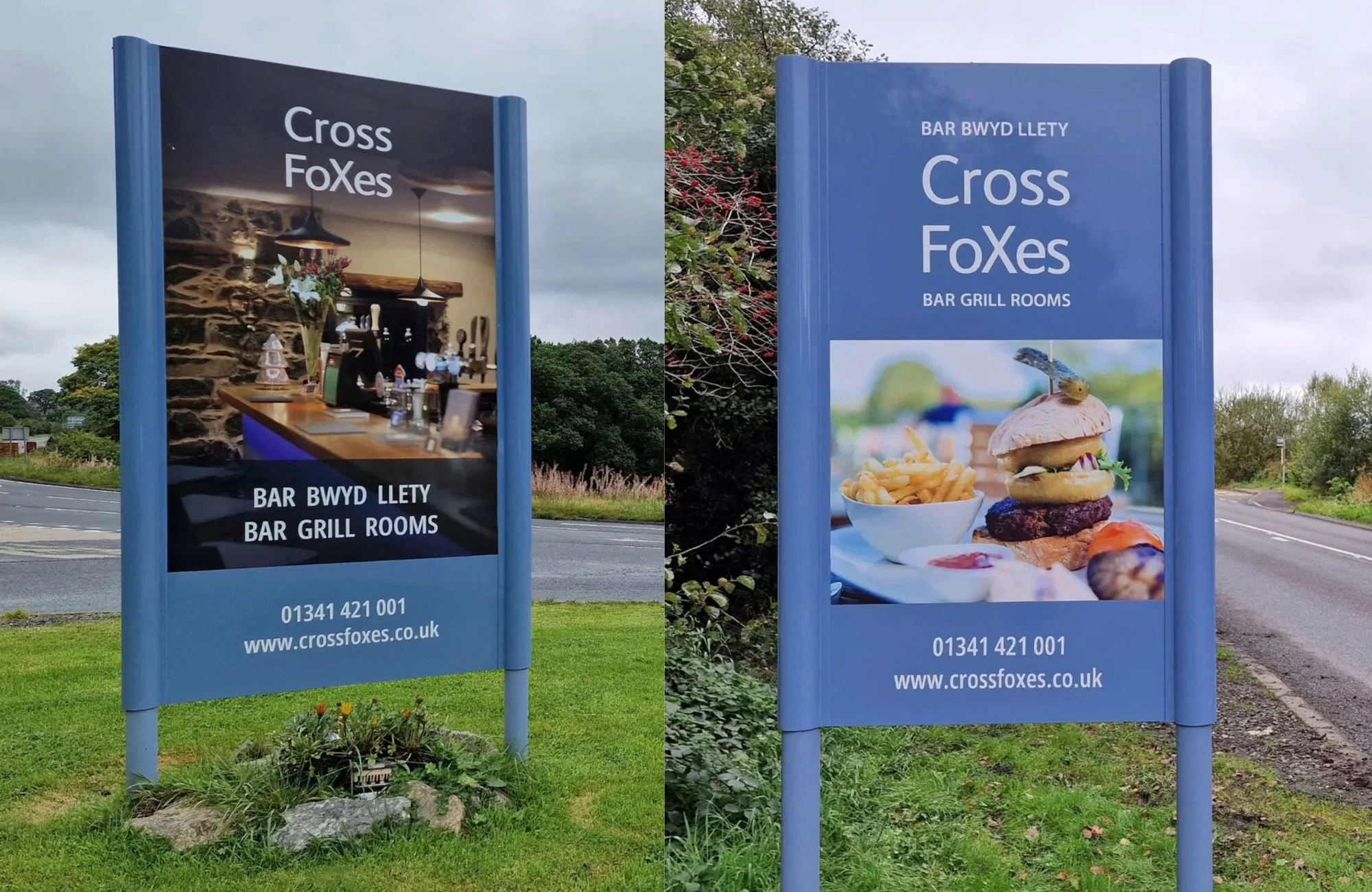 CROSS FOXES An award-winning 5 Star Inn, Cross Foxes is a sister company to the Hafod’s Bar, Brasserie and Hotel. A new set of menus were designed for the Cross Foxes Bar and Grill as well as a refreshed design for its external signage.