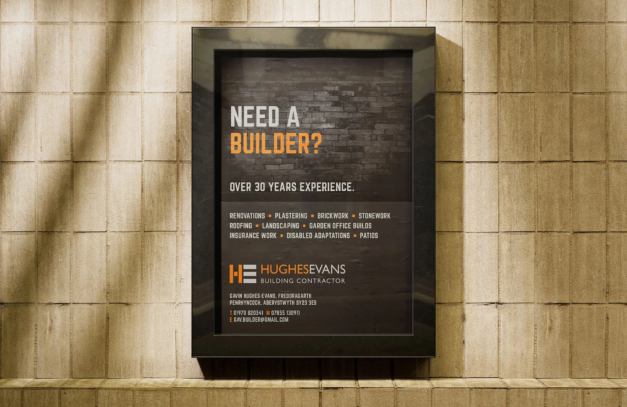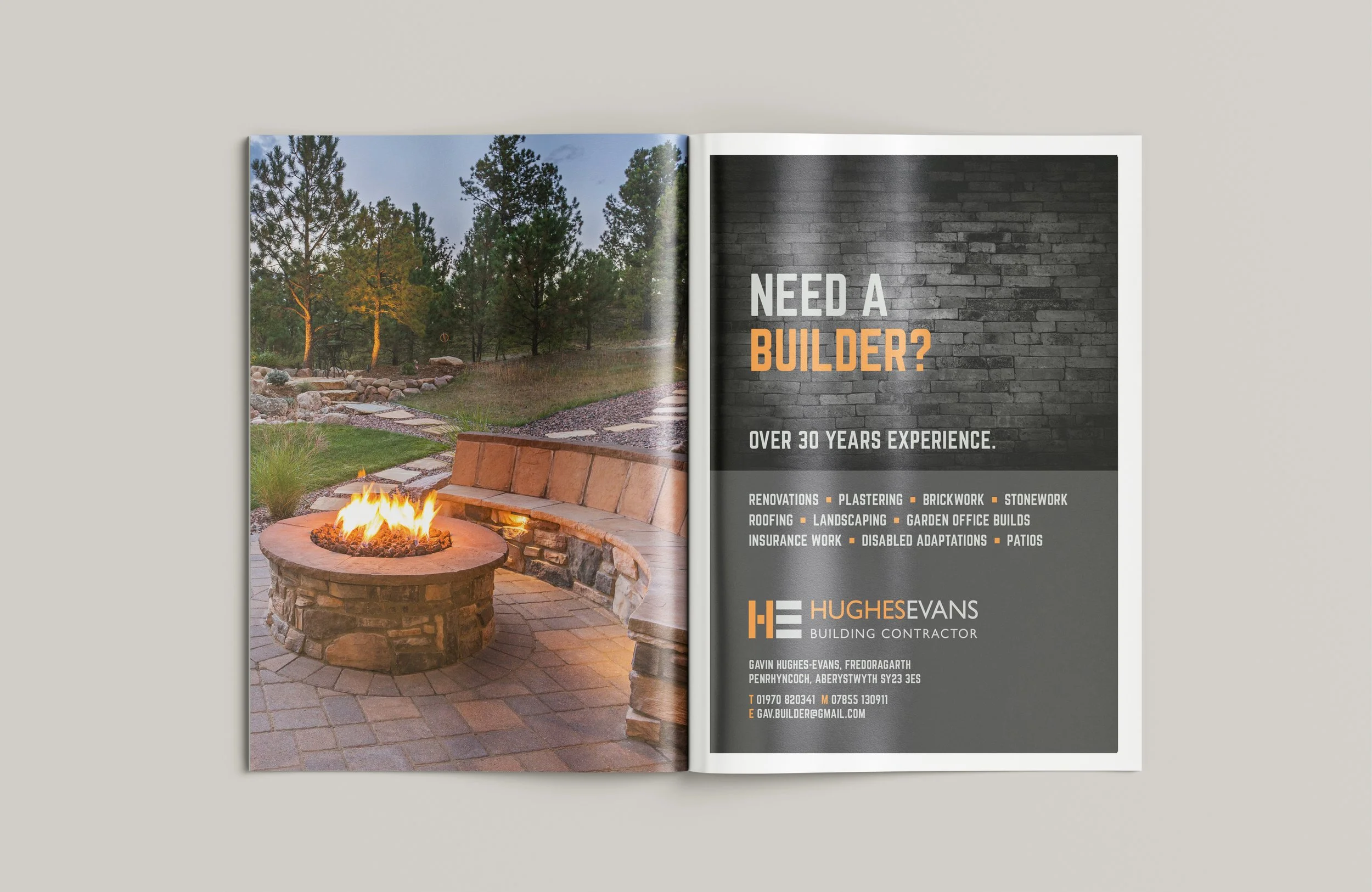 GAVIN HUGHES-EVANS - BUILDING CONTRACTOR With over 30 years’ experience as a building contractor, Gavin required an identity for his company. Design work included business cards, livery, marketing material and clothing.